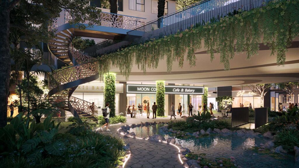 Mua sắm giữa những tầng cây xanh thực sự mang đến trải nghiệm khác biệt. “Nó giống như cuộc dạo chơi dưới chân tòa nhà, dưới những tán cây chứ không đơn thuần là mua sắm. Bởi dưới khối đế này, chúng tôi thiết kế bao quanh nó còn là khu vườn sức khỏe, đường dạo ánh sáng. Đây vừa là không gian mua sắm với các thương hiệu lớn vừa là nơi kết nối cư dân với nhau, cũng là không gian vui đùa của trẻ nhỏ”, đại diện chủ đầu tư chia sẻ.